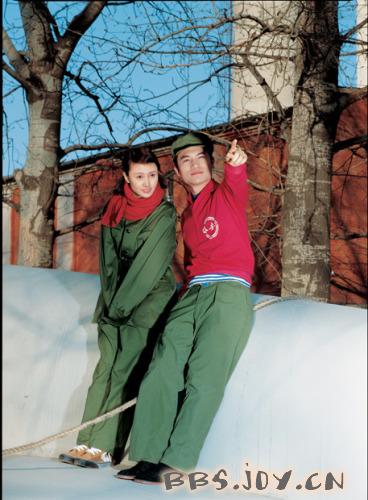 在光秃秃的树下,一对恋人,顶着寒风,就为了那一刻的浪漫与温情。看耿乐与袁泉的服装,就好象电视里看道德三十年代的爱情,虽然简单,但很幸福。