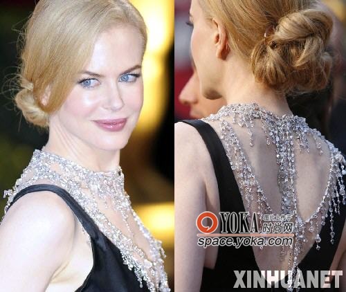 2月24日,好莱坞影星妮可·基德曼在第80届奥斯卡颁奖典礼上佩戴的项链使简洁的黑色礼服成为众人注目的焦点。(上图)