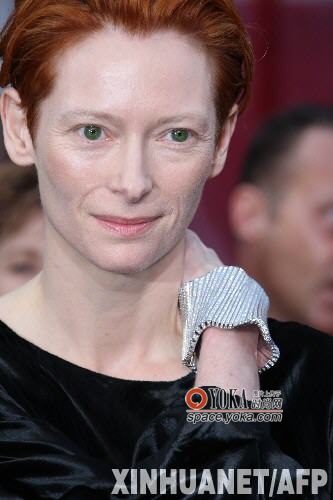 2月24日,第80届奥斯卡最佳女配角获得者蒂尔达·斯温顿在颁奖典礼上一头红发、一身黑衣和一只简洁的手镯反而没有将她在霓裳鬓影中埋没。