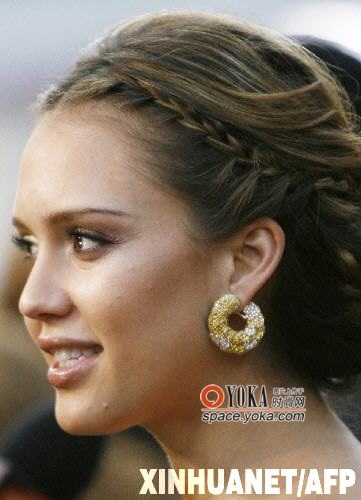 2月24日,女演员杰西卡·阿尔巴在第80届奥斯卡颁奖典礼上佩戴的这款金色耳环相当典雅。