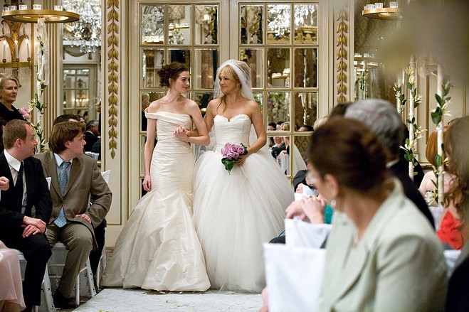图为安妮·海瑟薇(Anne Hathaway)和凯特·哈德森(Kate Hudson)在2009年影片《新娘大战》(Bride Wars)中的新娘造型。