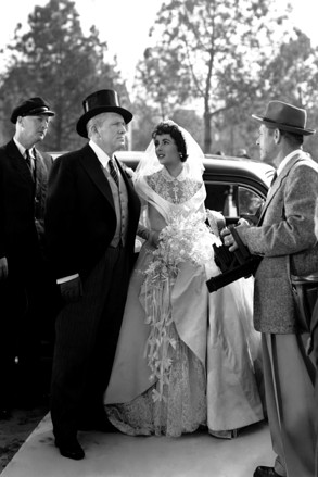 图为上世纪50年代影片《岳父大人》(Father of the Bride)中伊莉莎白·泰勒(Elizabeth Taylor)与斯潘塞·特雷西(Spencer Tracy)抵达教堂的一幕。该片中泰勒饰演的新娘应是好莱坞电影史上最有名的新娘之一。