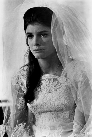 图为凯瑟琳·罗斯(Katherine Ross)在1967年影片《毕业生》(The Graduate)中结局时的新娘造型。