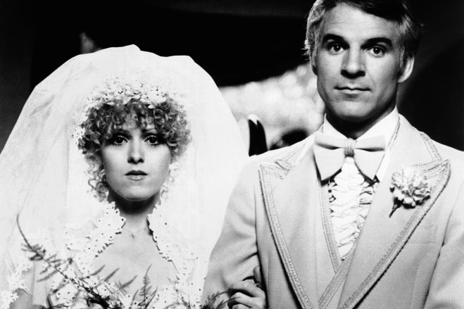 图为史蒂夫·马丁(Steve Martin)和伯纳黛特·彼德斯(Bernadette Peters)在1979年影片《大笨蛋》(The Jerk)中站在圣坛上。