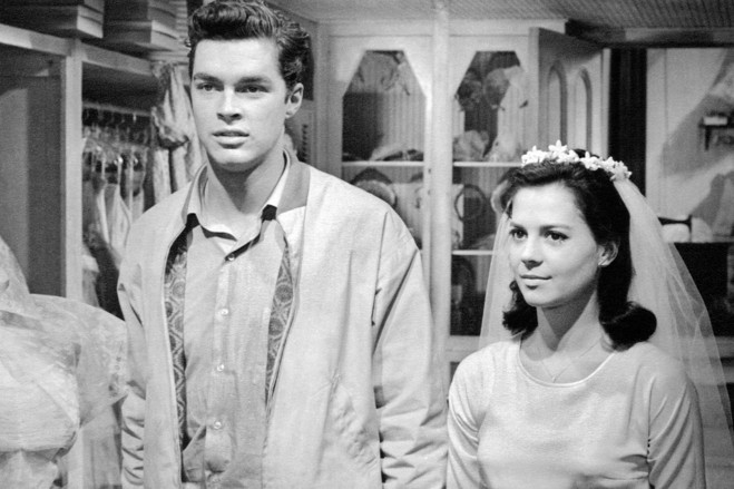 图为1961年影片《西区故事》(West Side Story)中的甜蜜婚礼场景。主演为理查德·贝依玛(Richard Beymer)和娜塔利·伍德(Natalie Wood)。
