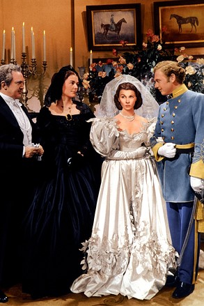 费雯丽(Vivien Leigh)、托马斯·米切尔(Thomas Mitchell)、芭芭拉·欧内尔(Barbara O’Neil)以及兰德布鲁克斯(Rand Brooks)等人演绎的《乱世佳人》(Gone with the Wind)中亦不乏经典新娘形象。图为费雯丽饰演的郝思嘉在闹脾气。