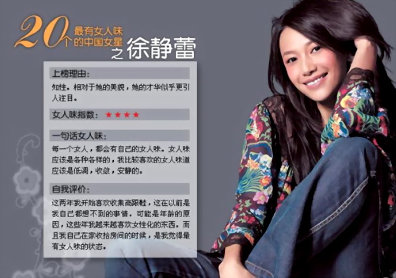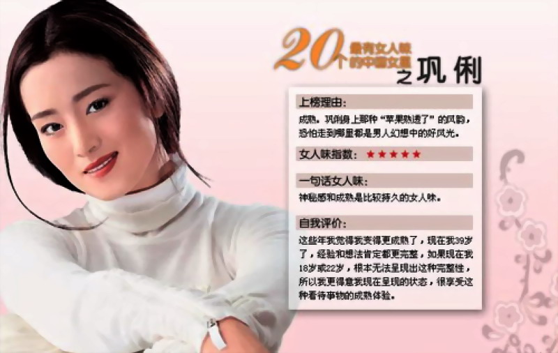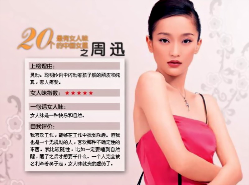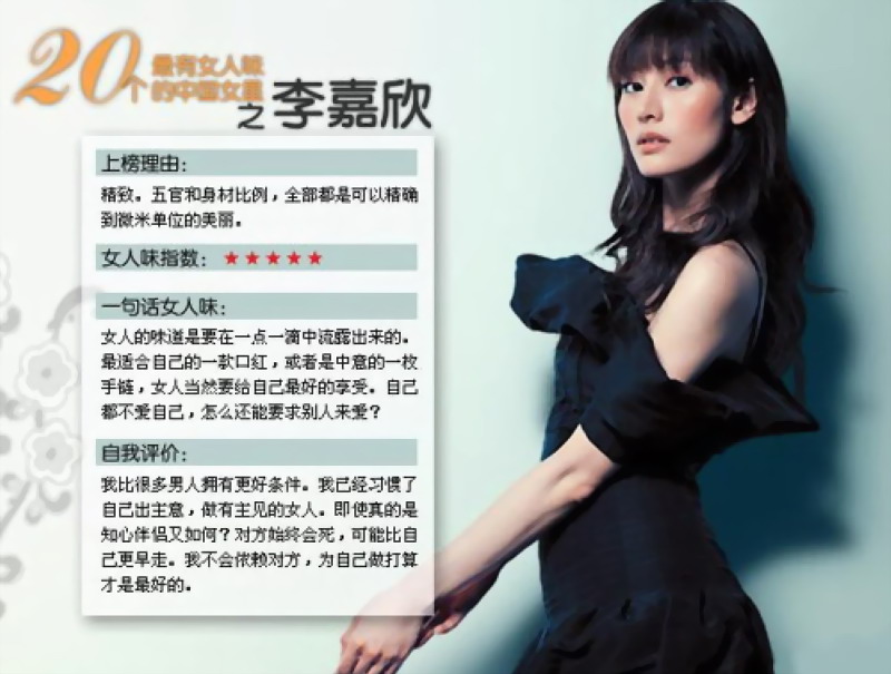 每个女人都有各自的韵味,总结下面这些女星的上榜理由,女人味,其实包含了太多的内容:高贵、优雅、灵动、狂野、神秘、真实、知性、娇嗲、精致、从容、成熟、历练、智慧、豁达、亲切、居家、博爱、摩登、才气、超脱……