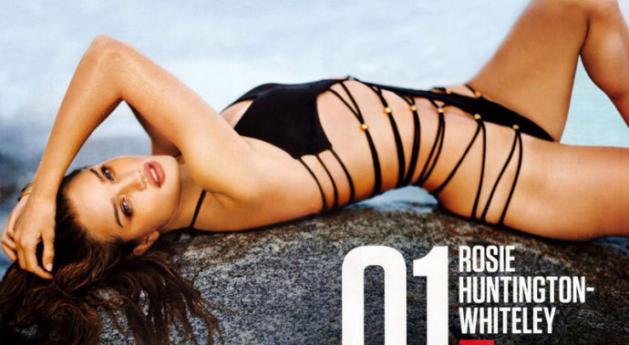 第一名:罗茜-汉丁顿-惠特莉今年《男人帮》的年度“最性感”头衔被来自《变3》的当红超模、“新变形金刚女郎”罗茜-汉丁顿-惠特莉摘得。罗茜不久前刚刚在美国《Maxim》杂志评选的2011年百位最性感女星中登上宝座,如今又一次在英国《男人帮》的榜单上拔得头筹。