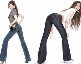 “美容大王”大S,深得身材美容秘诀,这两张穿牛仔裤的照片,让她的优美曲线毕露。