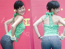 有“台湾第一长腿美女”之称的姚采颖,作为模特当然身材也一流,而且也很大方,在酒店中也不忘向记者展示自己的美臀。