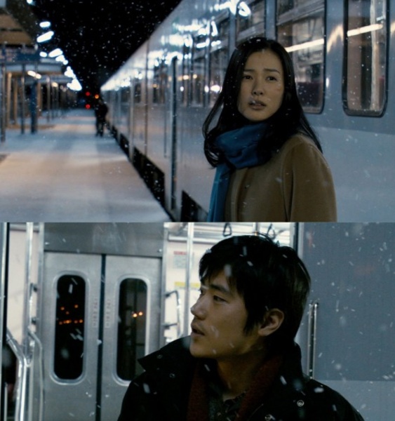 雪夜,一对各自怀有生命中不能承受之痛的的男女在过站开到终点的列车上相遇,因为暴雪无法返程的两个人不自觉的向彼此敞开了心扉。