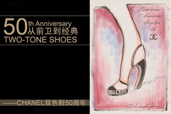 1957年,更推出了一款与传统大相径庭的鞋款——黑色鞋尖与米色鞋身的后绑带双色鞋,从此拉开了50年经典的序幕。