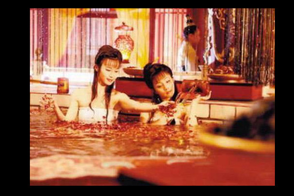 殷桃:《杨贵妃秘史》曝光的场景篇剧照中,华清池“香艳出镜”,殷桃版杨贵妃与石小群饰演的谢阿蛮在池中沐浴嬉戏,美艳醉人。