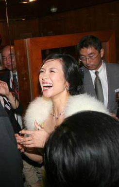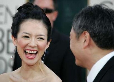 《卧虎藏龙》颁奖礼,章子怡mm对着眉开眼笑的李安那叫一乐。