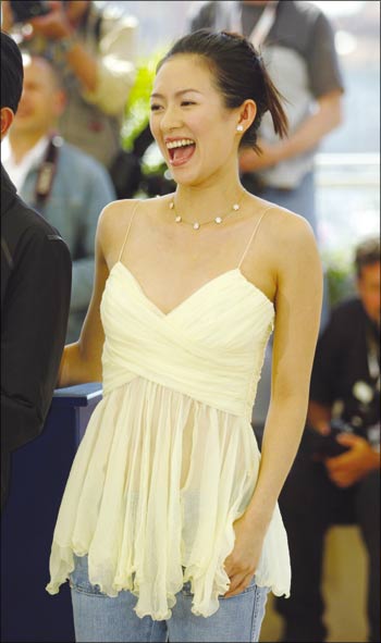 著名国际影星章子怡是个豪爽大气的女人,秉持决不装淑女的原则吊凯子、喝酒、演戏,连笑也要豪迈的“哈哈哈”,决不抿着小嘴玩什么一低头的娇羞。看这典型的章子怡微笑,张大嘴,露出9颗刚烤瓷的大白牙,向您宣告“瞧见没,我乐着呢”