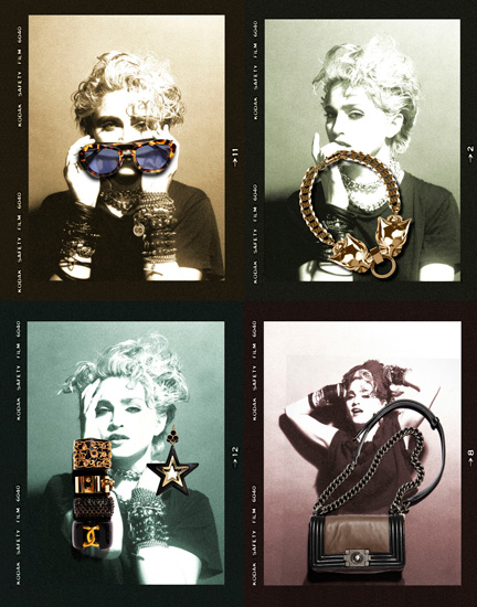 整个80’s 被谁的魅力占据?一定非摇滚女王Madonna 莫属:飞行员墨镜、摇滚风格狂爱的金属项链、宽手镯,就连包包也要一酷到底!