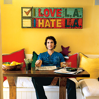 Superstar singer Josh Groban resides in a breezy Malibu bachelor-pad, set on two acres of beautiful tree-filled hillside.