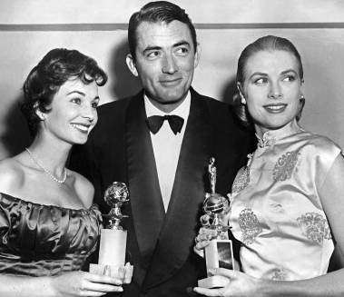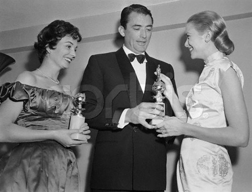 格利高里·派克Gregory Peck格蕾丝·凯利Grace Kelly珍·西蒙斯Jean Simmons在金球奖颁奖典礼上