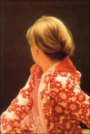 画家以照相般精确的手法描绘女儿贝蒂,画面上贝蒂转过身去红、白、粉的服装衬托出脑后的发髻,背影美妙传神,且给人以淡淡的忧伤的感觉。