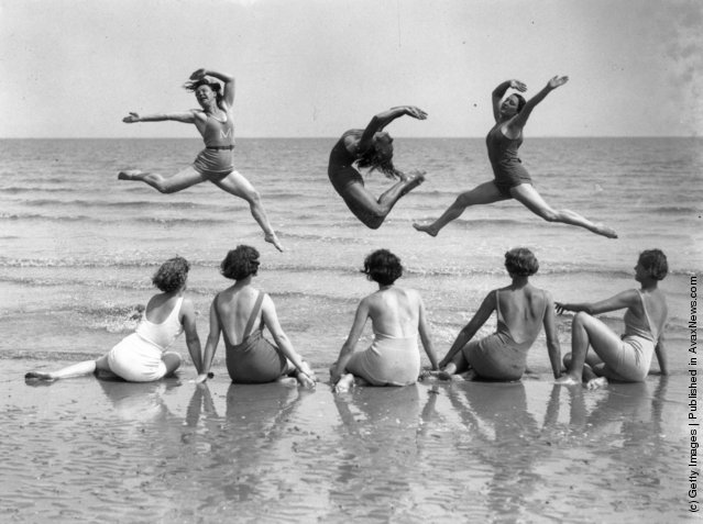 1935年的英国,一所女子学院的学生在海滩上练舞