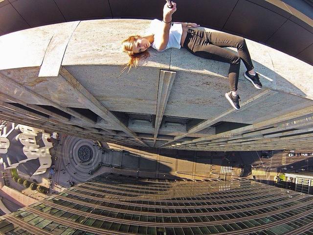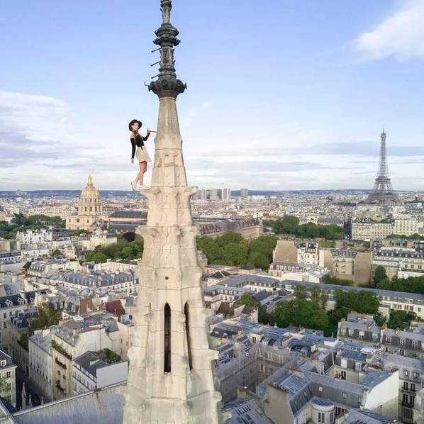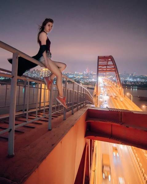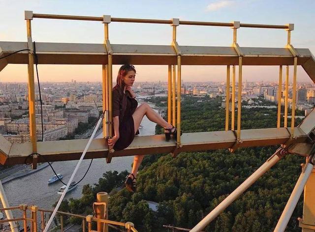 她爬遍了每一座高楼,在那些危险而美丽的地方,留下自己悠闲惬意的倩影。