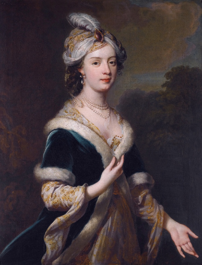 她身上这一袭满是异域风情的装束——这股彼时席卷整个英伦的风潮,说起来还是由她的儿时邻居兼闺中密友,随夫去土耳其上任的著名传记作者+旅行家玛丽·沃特利·蒙塔古女士回国后带火的。