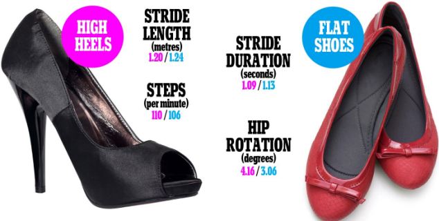高跟鞋可以让步幅变小,步速加快,臀部扭动角度加大。