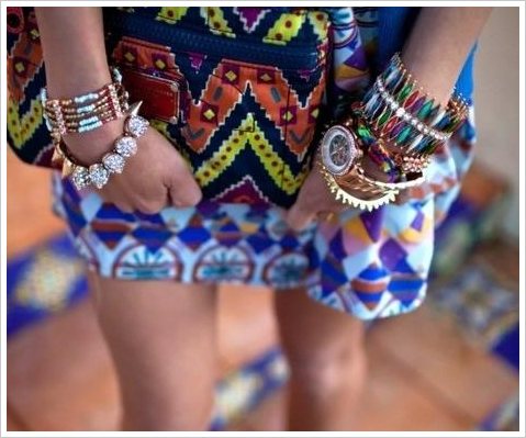 首先,你要从珠宝盒里挑出一条多色宝石手链,材质一定要讲究,最好是与玫瑰金材质搭配适宜的宝石,如绿松石、石榴石、月光石,这些颜色有着自己魅力的宝石;又或是黄水晶、紫水晶,这些有独特灵力的石头。这里编辑建议也可以挑选未经打磨处理的原矿石包镶手链,都是体现你不凡品味的不二之选。但同时也要注意千万不要忘记考虑颜色的搭配,相近色搭配起来自然不会出错,如蓝色紫色的叠加,亦或是选择蓝色橙色这样的对比色,搭配起来会较相近色更加出挑。