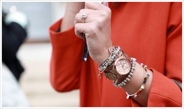 相信你的男友或朋友一定送过你一条细细的全钻手链,快把它拿出来和金表mix在一起吧!这种混搭,再配上一件超有质感的羊绒大衣,优雅大方又低调的炫富,你一定会对此爱不释手。亦或是宽型满钻手镯,不一定需要钻石那么名贵,锆石手镯也可以到到同样效果,同时要注意,在手镯宽度的选择上,要有粗有细,这样才不失主次。