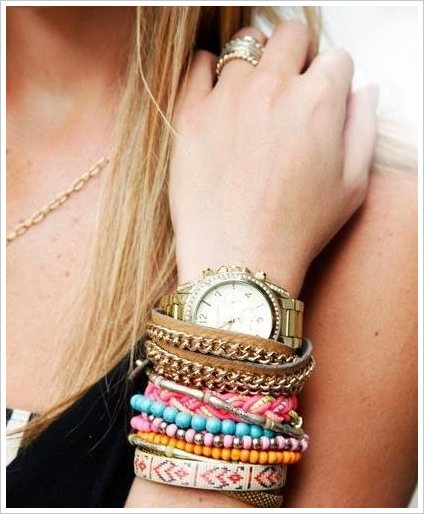 金色腕表是时尚尖兵的不二之选,因为不管是搭配多彩的毛衣还是剪裁得体的连衣裙,都显得高端大气上档次,但一只腕表又实在太孤单,怎样才能体现出自己的时尚品味?相信你看多了欧美明星街拍时的腕间风采,就会发现金色腕表与形色不同的手链或手镯叠戴,已然成为时尚icon抢镜的一种新风潮。