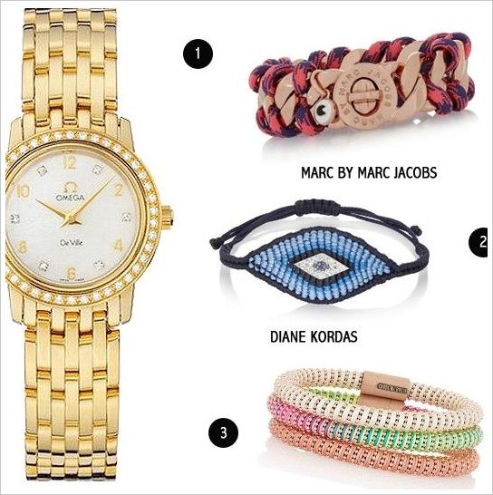 一、金色手表+多色宝石手链