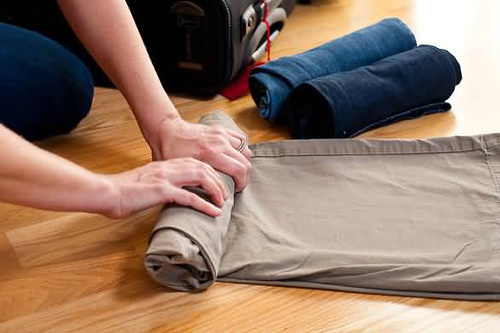 1.普通叠衣法太占空间,Poole首先将衣裤紧紧卷成轴