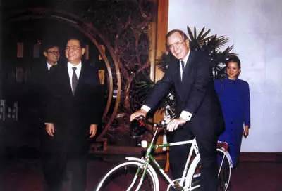 △老布什骑上自行车