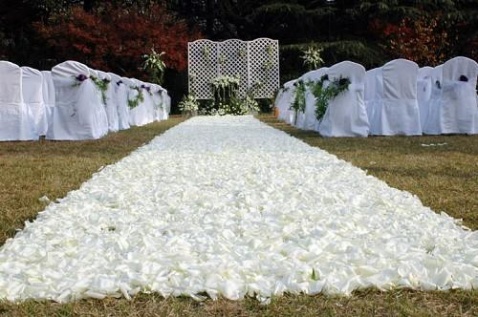 流行热点:银白色的水晶可以为你的冬季婚礼增添一些迷幻色彩;你可以尝试用白色天鹅绒地毯来装点你典礼时的过道;用水晶帘做背景墙,挂上优雅的白色蝴蝶兰。如果你们的宣誓是在户外进行的,亲朋好友的到来会使氛围十分融洽。