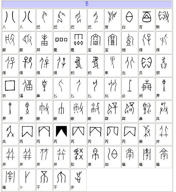 全部甲骨文对照表