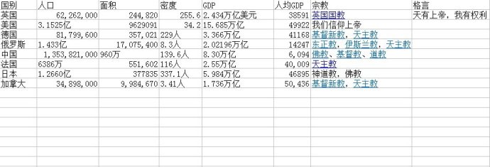 全球8个国家的条件比较