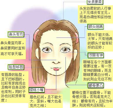 如果女性是鹅蛋面、面颊不露颧骨,则是福气之相,可享受到丈夫名成利就的成果。