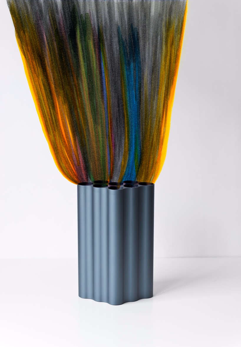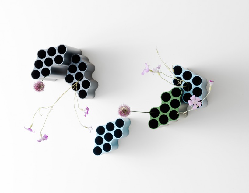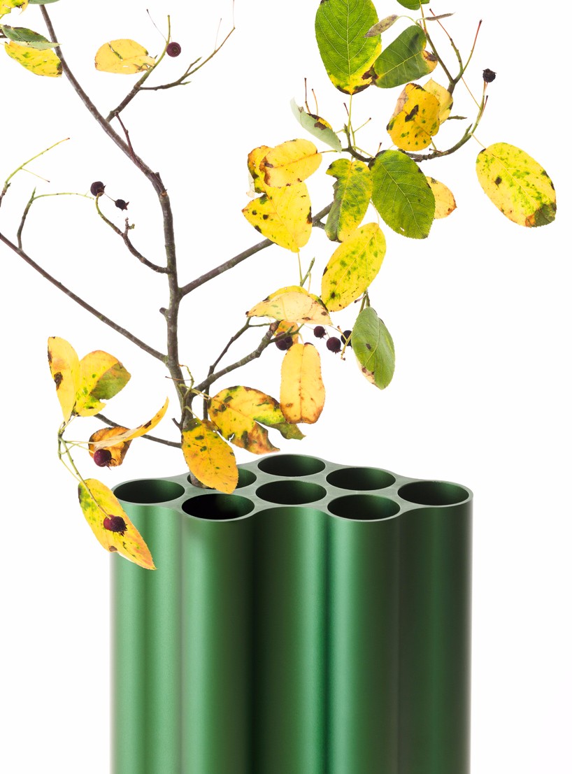 底座腔体部分作为花瓶的顶部,并将花瓶分成八个独立的管子,使用者可以根据喜好来打造属于自己的插花艺术。这款简单而又充满雕塑气息的花瓶突出了花朵精致的茎叶部分。