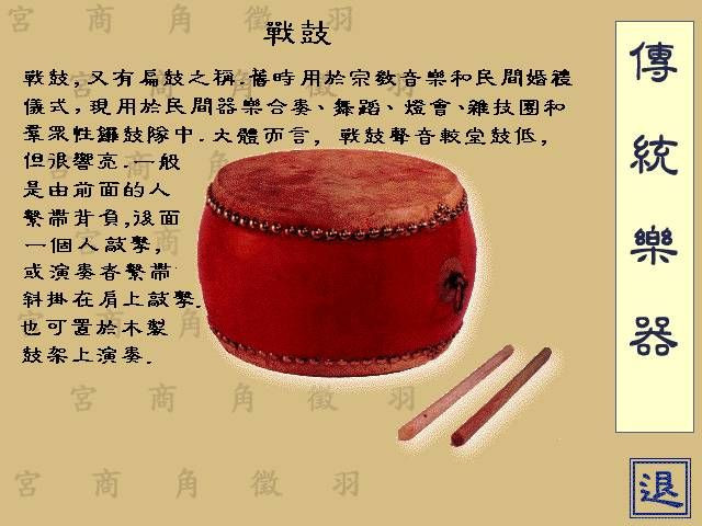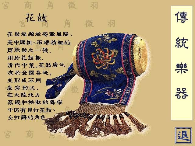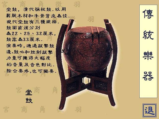 传统的民间器乐合奏,依其不同的组合,可以分六类:锣鼓乐,唢呐锣鼓乐,鼓吹乐,丝竹锣鼓乐,丝竹乐,弦索乐。