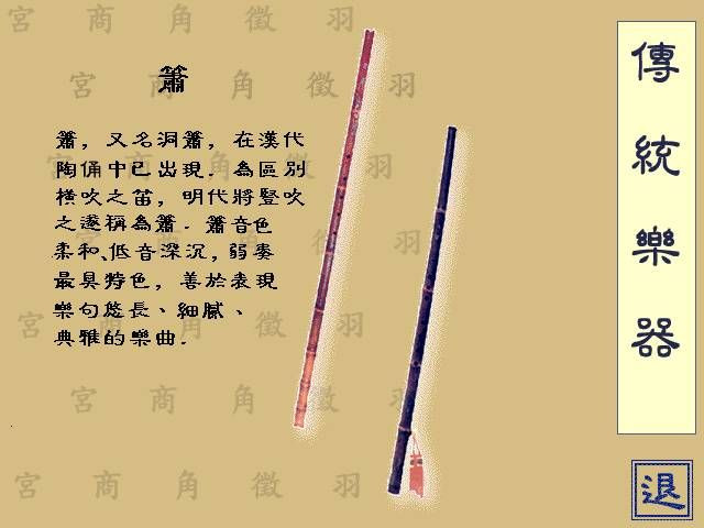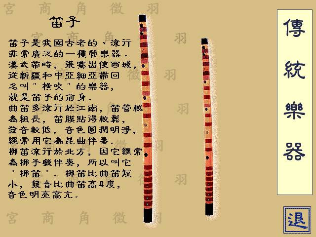 E .笛:流水落梅花 均孔七调翻 北吹五梆子 南奏花六板