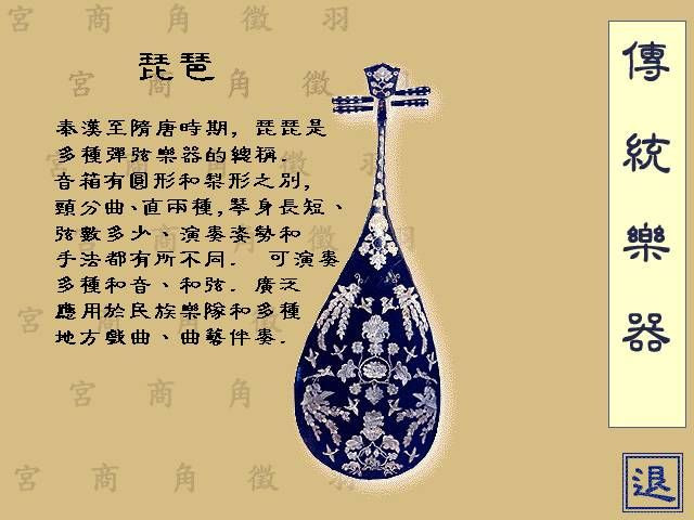 最初记载为枇杷或枇杷,弹弦乐器,在古代,琵琶一词曾做多种弹拨乐器的统称。“枇杷本出自胡中,马上所鼓也”-东汉。唐“敦煌琵琶谱,五弦谱现今还在演出。