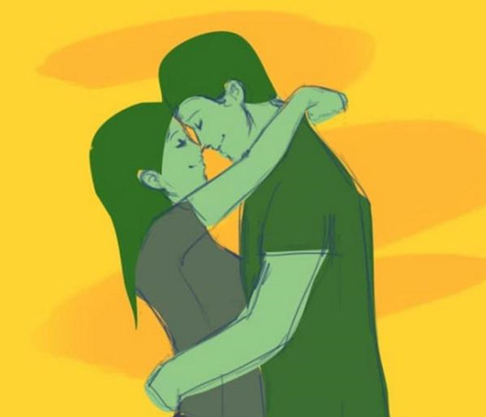 将自己的脸紧紧贴着对方的脸,两人之间毫无空隙的密封式拥抱。这一类型,表现出对对方的高度依赖。往好了说,是不愿分离的爱的印记;往坏了说,就是执念太强的证据。