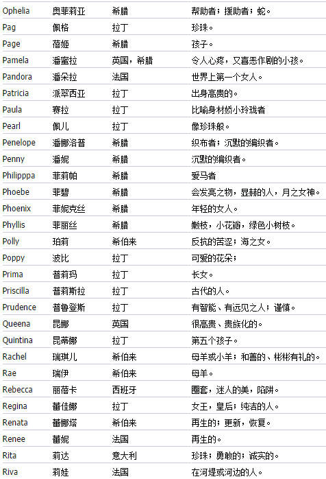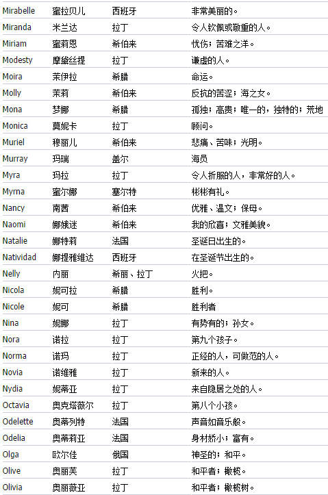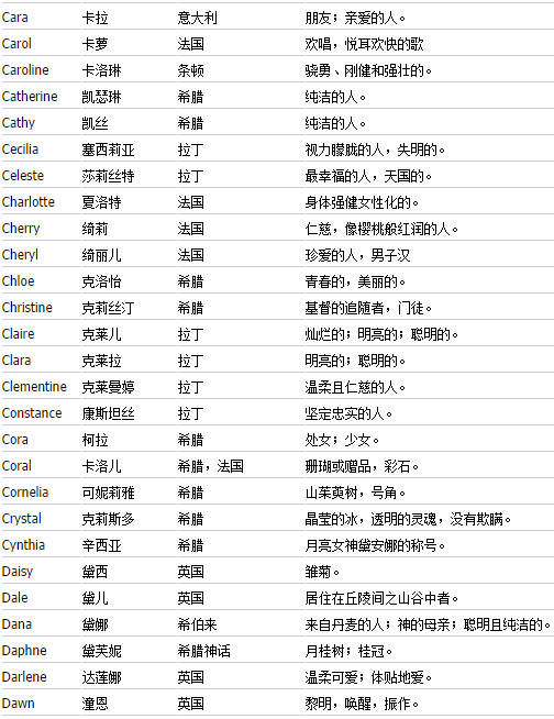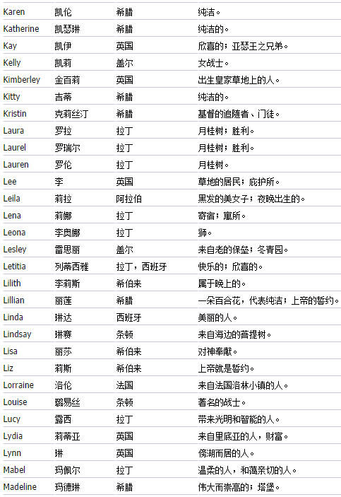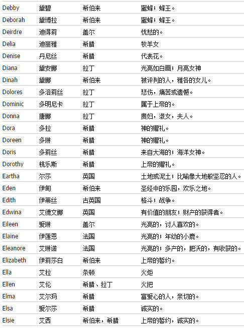 送给想起英文名的朋友们(女生篇)