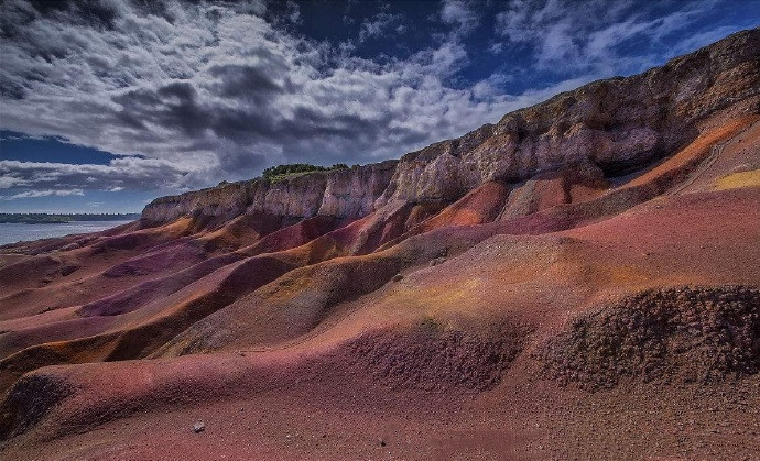 来到达尔文的第一个早晨,我起了个大早,沿着当地以色彩著称的East Point beach海岸散步。一块块石头就像一只只覆盆子纹络的冰淇淋,仿佛某位懒惰的祖先奉命将黄色、白色、橙色和红色配料调进适当的褐色崖壁中,却被一只跳跃的负鼠转移了注意力,手里的活半途而废,各种颜色便自成一体打着卷嵌在岩石上……