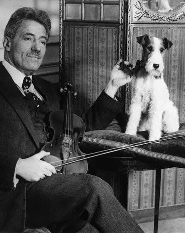 小提琴家弗里茨·克莱斯勒(1875-1962)与他的狗