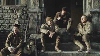 《拯救大兵瑞恩》中,上尉的队伍选择留下来和瑞恩所在的部队一起守卫一座作为最后退路的桥,等着一支比他们人数多很多的德国部队,看来难免一场血战。一番布阵之后,他们在空荡荡的残破的小镇上守株待兔。一部留声机被搬到室外,法国香颂歌后伊迪丝·皮亚芙(Edith Piaf)的幽怨歌声,飘荡在安静的巷陌间。伊迪丝的歌,很大程度上是被视为花都巴黎的象征的,对这群美国大兵而言,意味着离他们很近的巴黎(现在是他们置身其中的废墟),和离他们很远的浪漫(家乡的爱人和亲人,一切柔情的回忆)。激战之前的安宁,在这样断人心肠的巴黎玫瑰般的歌声中,分外的充满张力。厄本、来宾等几个聊起了女人,上尉和瑞恩则聊起了家人和回忆。他们的闲聊,也象伊迪丝的歌声一样,充满了温情和不祥之兆,这种看似平静的氛围,如一把拉满了的弓,特别触动心弦。