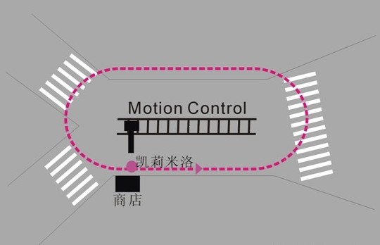 导演Michel Gondry在拍摄中使用了Motion Control系统,Motion Control中文全称高科技交互式摄影控制系统,可以同时同步控制摄影机、拍摄物、灯光等运动动线及拍摄底片速度的交互式摄影控制系统。拍摄时将轨道放置在街道中间位置如图示,设计好它一圈拍摄的轨迹,并让摄影机一圈圈重复这个拍摄动作。
