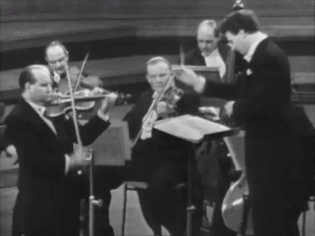 1961年奥伊斯特拉赫与克林·戴维斯指挥的英国室内管弦乐团在伦敦皇家节庆厅演奏的巴赫《a小调第一小提琴协奏曲》第三乐章。