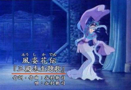 《风姿花传》是日本动画片《三国志》的片尾曲,意思是:风的姿态由花来传达。也可说成是花传风姿。它的名字来自日本著名能乐大师世阿弥的能乐理论著作《风姿花传》:“若能将此花,由我心传至你心,谓之风姿花传。”便是其中名句。因为人看不到风的形状,唯有漫天飞舞的花瓣让我们感觉到风的存在,无所不在的风与按时令盛开凋谢的花暗喻着人生的无常。