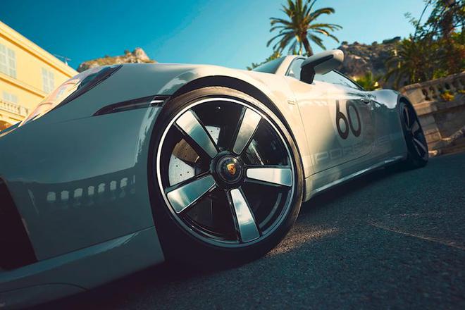 鸭尾扰流板也显着增加了经典设计,向 1970 年代备受喜爱的 911 Carrera RS 致敬,双泡车顶是对 997 Sport Classic 的回溯。保时捷内外的标志让人想起该公司早期的一些设计,经典 Fuchs 车轮,在 Sport Classic 上将前轮提升至 20 英寸,后轮是 21 英寸。